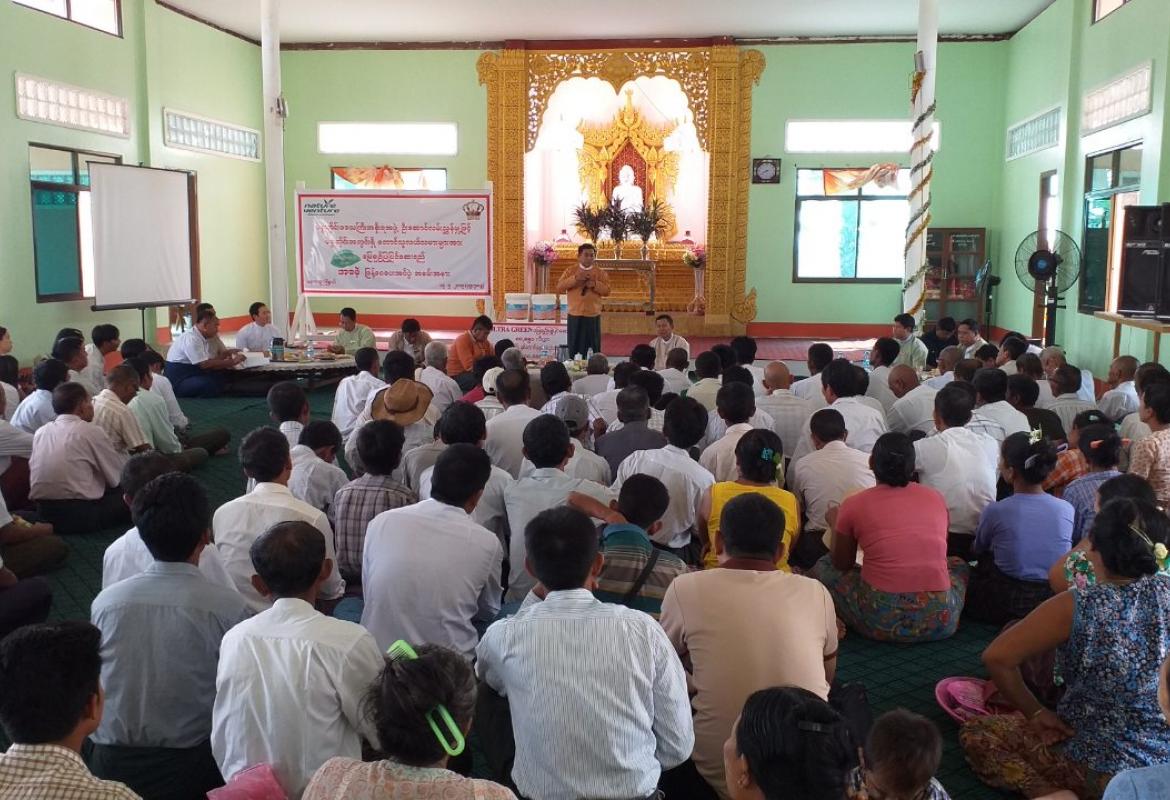 ရေတာရှည်မြို့နယ် စိုင်တမော့ကြီးကျေးရွာ ဓမ္မာရုံ၌ ဒေသခံတောင်သူများအတွက် မြေချဉ်ပြုပြင်ဆေးရည် အခမဲ့လှူဒါန်းပွဲကို ယနေ့ နံနက်ပိုင်းက ပြုလုပ်ခဲ့ရာ ပဲခူးတိုင်းဒေသကြီးဝန်ကြီးချုပ် ဦးဝင်းသိန်း တက်ရောက်ခဲ့သည်။