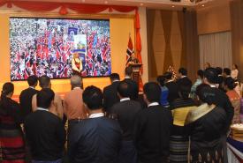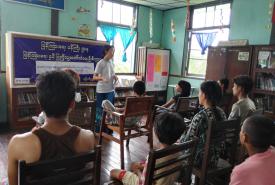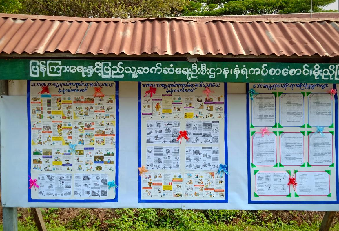 သဘာဝဘေးအန္တရာယ်ဆိုင်ရာ အသိပညာပေး နံရံကပ်စာစောင် မြေစိုက်ပြဘုတ်တွင် ပြသထားရှိ