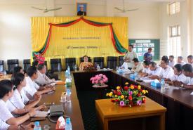 ပဲခူးတိုင်းဒေသကြီး သာယာဝတီခရိုင်၊ မိုးညိုမြို့နယ်၊ ပြန်ကြားရေးနှင့်ပြည်သူ့ဆက်ဆံရေး ဦးစီးဌာနရုံးရှေ့ မြေစိုက်ဘုတ်တွင် သဘာဝဘေးအန္တရာယ်ကြိုတင်ကာကွယ်ရေးနှင့် ဖြစ်ပွားလာပါက ..........