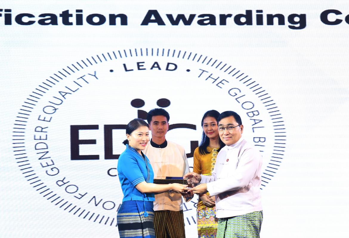 လုပ်ငန်းခွင်အတွင်း ကျား၊ မ တန်းတူညီမျှရှိရေးနှင့် ကျား၊ မ တန်းတူညီမျှရေး လုပ်ဆောင်မှုအတွက် ရရှိမည့် စီးပွားရေးအကျိုးအမြတ်များဆိုင်ရာ ကမ္ဘာ့ထိပ်တန်း အသိအမှတ်ပြု စံလက်မှတ်ချီးမြှင့်ခြင်း အခမ်းအနားကျင်းပ