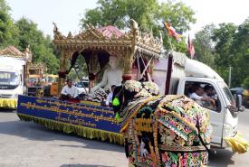 ထာဝရငြိမ်းချမ်းရေးစေတီတော်တွင် ကိန်းဝပ်စံပယ်တော်မူမည့် စကျင်ဗုဒ္ဓရုပ်ပွားတော်များ ကျောက်ဆည်မြို့သို့ ဒေသစာရီ ကြွချီအပူဇော်ခံ