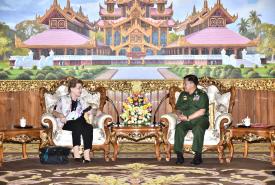 တပ်မတော်ကာကွယ်ရေးဦးစီးချုပ် ဗိုလ်ချုပ်မှူးကြီး မင်းအောင်လှိုင်သည် လွတ်လပ်သော စုံစမ်းစစ်ဆေးရေးကော်မရှင်(ICOE) ဥက္ကဋ္ဌ ဖိလစ်ပိုင်သံအမတ်ကြီးဟောင်း Ms. Rosario Manalo နှင့််အဖွဲ့အား ယနေ့ညနေပိုင်းတွင် နေပြည်တော်ရှိ ဘုရင့်နောင်ရိပ် သာဧည့်ခန်းမဆောင်၌ လက်ခံတွေ့ဆုံသည်။