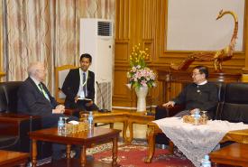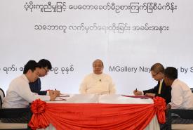 ရင်းနှီးမြှုပ်နှံမှုနှင့် နိုင်ငံခြားစီးပွားဆက်သွယ်ရေးဝန်ကြီးဌာန ပြည်ထောင်စုဝန်ကြီး ဦးသောင်းထွန်းသည် ယနေ့နံနက် ၉ နာရီတွင် M Gallery ဟိုတယ်၊ နေပြည်တော်၌ ကျင်းပပြုလုပ်သည့် ဧရာဝတီဘဏ်လီမိတက်မှ အတိုးနှုန်းသက်သာသော နှစ်ရှည်ချေးငွေနှင့် ပံ့ပိုးကူညီ အကောင်အထည်ဖော်ထားသော တပ်ကုန်းမြို့နယ်ရှိ ပေတောကျေးရွာ ဥစားကြက်ခြံ စီမံကိန်းအတွက် ပေတောကျေးရွာ ရန်ပုံငွေဖွံ့ဖြိုးတိုးတက်ရေးအသင်း၊ ဧရာဝတီဘဏ်လီမိတက်နှင့် Myanmar CP.Livestock Co.,Ltd. တို့အကြားချေးငွေ သဘောတူ စာချုပ်ချုပ်ဆိုခြင်းအခမ်းအနားသို့ တက်ရောက်သည်။