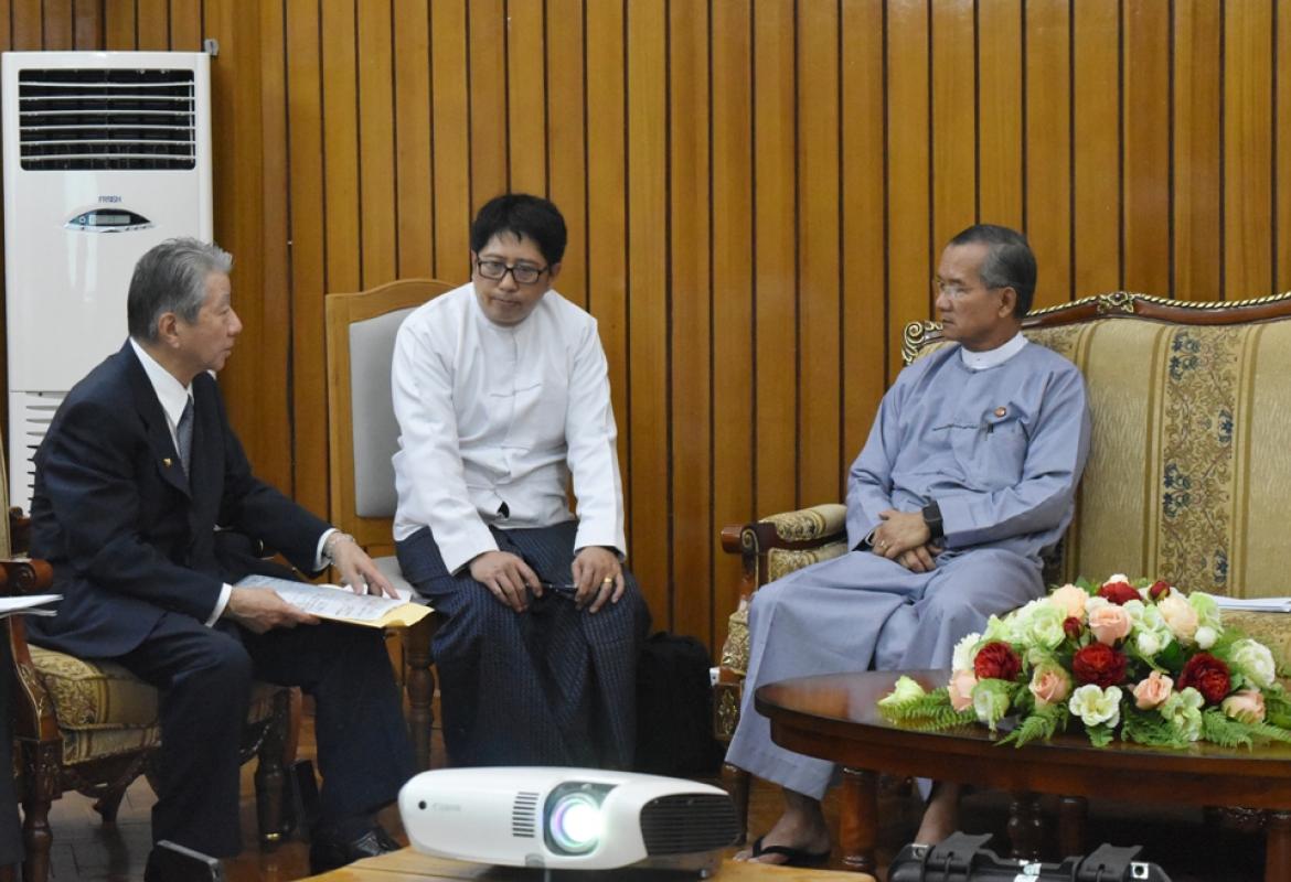 ဟိုတယ်နှင့် ခရီးသွားလာရေးဝန်ကြီးဌာန ပြည်ထောင်စုဝန်ကြီး ဦးအုန်းမောင်သည် ဂျပန်နိုင်ငံ အအိချီခရိုင် နာဂိုဟာမြို့တွင် မြန်မာနိုင်ငံ၏ ဂုဏ်ထူးဆောင် ကောင်စစ်ဝန်အဖြစ် ခန့်အပ်ထားသည့် မစ္စတာတိုရှိအိုနီရှိမူရကို ယနေ့နံနက်ပိုင်းတွင် နေပြည်တော်ရှိ ဝန်ကြီးရုံးဧည့်ခန်းမ၌ တွေ့ဆုံသည်။