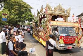 မကွေးတိုင်းဒေသကြီး သရက်ခရိုင် အောင်လံမြို့နယ်သို့ နေပြည်တော် ဒက္ခိဏသီရိမြို့နယ် ရန်အောင်မြင်ကုန်းတော်၌် တည်ထားကိုးကွယ်လျက်ရှိသော ထာဝရငြိမ်းချမ်းရေးစေတီတော်တွင် ကိန်းဝပ်စံပယ်တော်မူမည့် စကျင်ဗုဒ္ဓရုပ်ပွားတော်နှစ်ဆူ၊ ရွှေထီးတော်၊ ရွှေငှက်မြတ်နားတော်နှင့် ရတနာစိန်ဖူးတော်တို့သည် ဧပြီ ၂၈ ရက် နံနက်ပိုင်းက ပြည်မြို့မှတစ်ဆင့် အောင်လံမြို့နယ်သို့ နံနက် ၈ နာရီ မိနစ် ၂၀ တွင် ဒေသစာရီကြွချီအပူဇော်ခံ ရောက်ရှိခဲ့သည်။