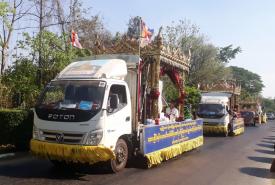 ထာဝရငြိမ်ချမ်းရေးစေတီတော်တွင် ကိန်းဝပ်စံပယ်တော်မူမည့် စကျင်ဗုဒ္ဓရုပ်ပွားတော်များ ဟင်္သာတမြို့သို့ ဒေသစာရီကြွချီပူဇော်ခံ