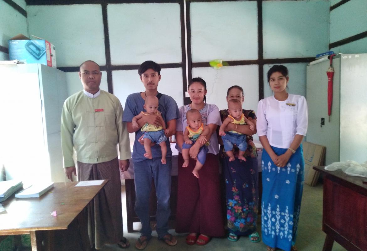 သုံးမွှာပူးကလေးနှင့် မိခင်အား လူမှုဝန်ထမ်းဦးစီးဌာနမှ ထောက်ပံ့ငွေများပေးအပ်