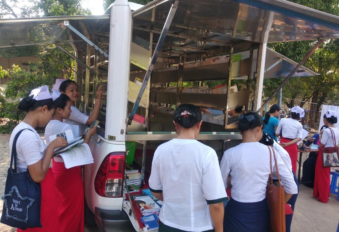 ဒေါ်ခင်ကြည်ဖောင်ဒေးရှင်း ရွေ့လျားစာကြည့်တိုက်မှ စာအုပ်စာစောင်များ လိုက်လံငှားရမ်းပေးလျက်ရှိ