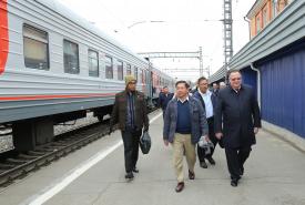 တပ်မတော်ကာကွယ်ရေးဦးစီးချုပ် ဗိုလ်ချုပ်မှူးကြီး မင်းအောင်လှိုင် Burya Tiya ပြည်နယ်ဝန်ကြီးချုပ်က တည်ခင်းဧည့်ခံသည့် အလုပ်သဘော ညစာစားပွဲတက်ရောက်၊ အူလန်အူဒယ်မြို့မှ အီကုခ်မြို့သို့ လျှပ်စစ်ရထား လိုက်ပါစီးနင်းလေ့လာ