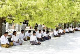 စစ်တွေမြို့ရှိ ကျောင်းတိုက်အသီးသီး၌ မဟာသင်္ကြန်အကြတ်နေ့တွင် ကုသိုလ်ကောင်းမှု ပြုလုပ်သူများ၊ သီလဆောက်တည်သူများဖြင့် စည်ကားလျက်ရှိ