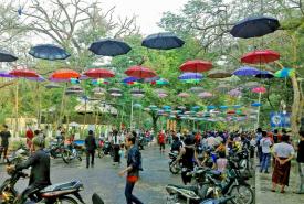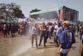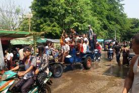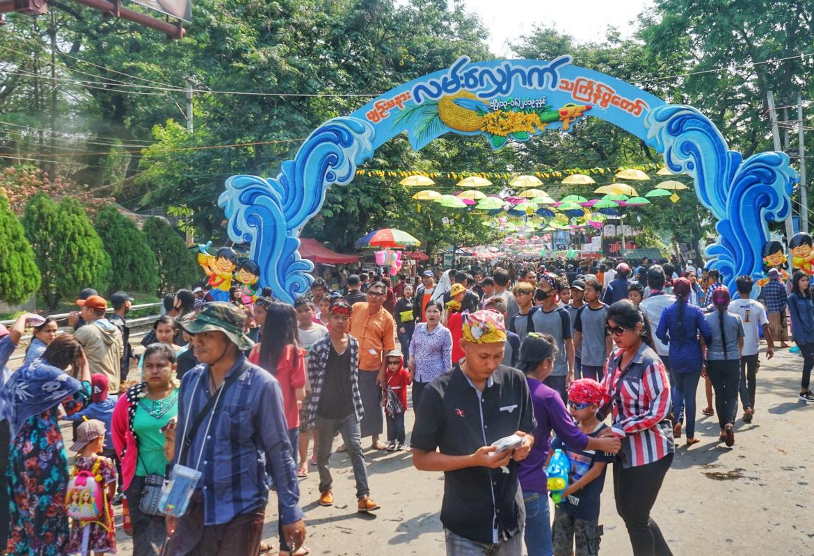 ရခိုင်ပြည်နယ် မာန်အောင်မြို့ရှိ အတာသင်္ကြန် ရေကစားမဏ္ဍပ်များတွင် ရေလောင်းရေပက်ခံသူများဖြင့် စည်ကားလျက်ရှိ