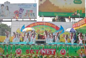 ပျဉ်းမနားမြို့နယ် လမ်းလျှောက်သင်္ကြန်ပွဲတော် (သင်္ကြန်အကြတ်)နေ့တွင် ရေပတ်ခံထွက်သူများဖြင့် စည်ကားလျက်ရှိ