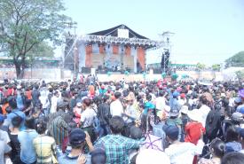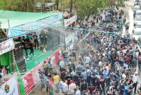 ကချင်ပြည်နယ် မိုးညှင်းမြို့ မီးရထားဘူတာရုံမှ မိုးညှင်းဒီဂရီကောလိပ်သို့ သွားရာလမ်းပေါ်ရှိ လမ်းလျှောက်သင်္ကြန်တွင် လာရောက်လည်ပတ်သူ၊ ရေပက်ကစားကြသူများဖြင့် စည်ကား