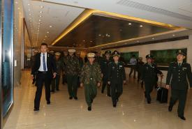 တပ်မတော်ကာကွယ်ရေးဦးစီးချုပ် ဗိုလ်ချုပ်မှူးကြီး မင်းအောင်လှိုင်ဦးဆောင်သည့် မြန်မာ့တပ်မတော် ချစ်ကြည်ရေးကိုယ်စားလှယ်အဖွဲ့ ကွမ်ကျိုးမြို့သို့ရောက်ရှိ၊ တောင်ပိုင်းစစ်နယ်ဝန်းကွပ်ကဲမှုဌာနချုပ် ဌာနချုပ်မှူး Vice Admiral Yuan Yubai နှင့်တွေ့ဆုံ ဆွေးနွေး