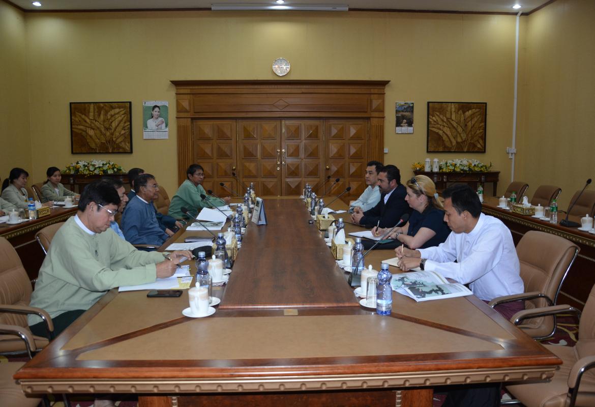 သယံဇာတနှင့် သဘာဝပတ်ဝန်းကျင်ထိန်းသိမ်းရေးဝန်ကြီးဌာနပြည်ထောင်စု ဝန်ကြီး ဦးအုန်းဝင်းအားသြစတြီးယားနိုင်ငံအခြေစိုက် FOUR PAWS International ၏Country Director , Ms. Marina Ivanova ၊ Senior Project Manager , Mr. Mahdi Quatrameez တို့သည် ယနေ့ နံနက် ၉ နာရီခွဲတွင် ပြည်ထောင်စုဝန်ကြီးဧည့်ခန်းမ၌ လာရောက်တွေ့ဆုံဆွေးနွေးသည်။