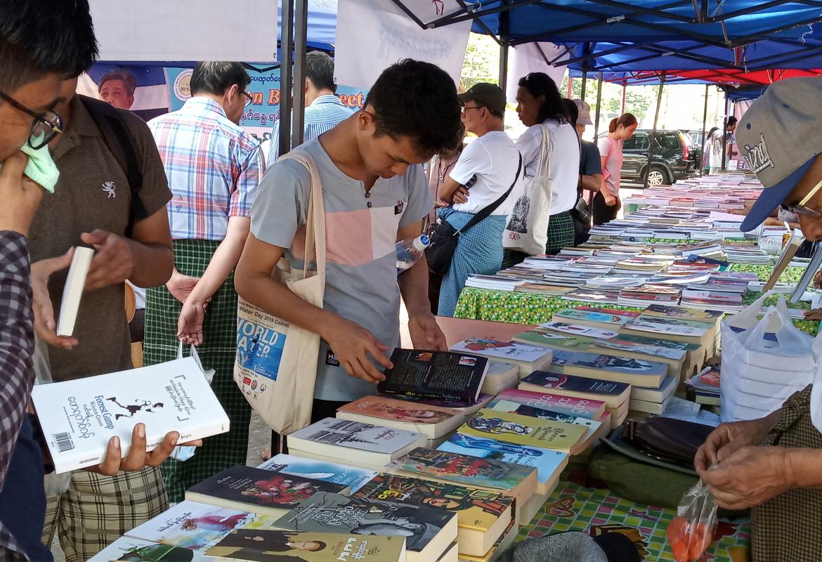 ရန်ကုန်မြို့ သိမ်ဖြူလမ်းရှိ စနေ၊ တနင်္ဂနွေစာအုပ်လမ်း၏ စာအုပ်ရောင်းရာသီ နောက်ဆုံးနေ့တွင် ဇာတ်ညွှန်းစာအုပ်မိတ်ဆက်ပွဲ၊ စာပေဟောပြောပွဲ၊ စာပေပဟေဠိများဖြင့်