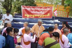 ပါမောက္ခချုပ် ဆရာတော်ဘုရားကြီး သက်တော် (၇၉)နှစ်ပြည့် မွေးနေ့အထိမ်းအမှတ်အဖြစ် သီလရှင်အပါး(၁၀ဝ၀)တို့အား ဆွမ်းဆန်စိမ်းလောင်းလှူ