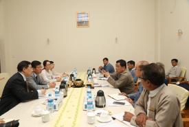 ပြည်ထောင်စုဝန်ကြီး ဒေါက်တာသန်းမြင့် DaNa Facility Empowering Enterprise ၏ Senior Technical Adviser, Dr. Peter Brimble နှင့်အဖွဲ့အား လက်ခံတွေ့ဆုံ