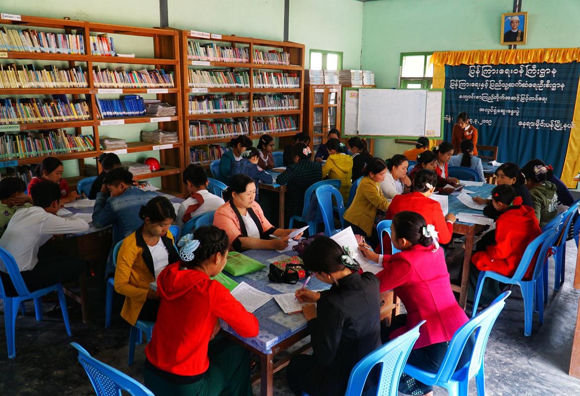 ရှမ်းပြည်နယ် (တောင်ပိုင်း)၊ လင်းခေးခရိုင်၊ မိုင်းပန်မြို့နယ် လူထုအခြေပြုဗဟိုဌာန (Community Centre) ခန်းမတွင် ကျောင်းစာကြည့်တိုက်များ