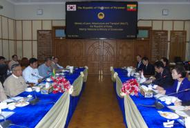 ပို့ဆောင်ရေးနှင့်ဆက်သွယ်ရေးဝန်ကြီးဌာန ပြည်ထောင်စုဝန်ကြီး ဦးသန့်စင်မောင်သည် ကိုရီးယားသမ္မတနိုင်ငံ၊ မြေယာ၊ အခြေခံအဆောက်အအုံနှင့်