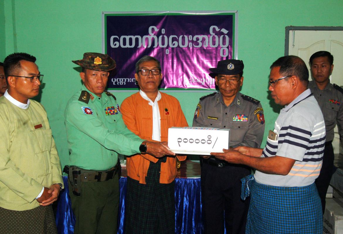 တာဝန်ထမ်းဆောင်စဉ်အတွင်း ကျဆုံးခဲ့ကြသည့် ရဲတပ်ဖွဲ့ဝင်များ၏ မိသားစုများအား ပြည်နယ်ဝန်ကြီးချုပ် ဦးညီပု ထောက်ပံ့ပစ္စည်းများပေးအပ်