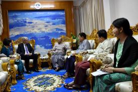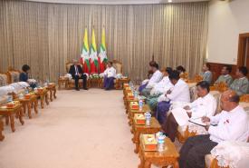 ပြည်ထောင်စုရွေးကောက်ပွဲကော်မရှင်ဥက္ကဋ္ဌ ဦးလှသိန်း မြန်မာနိုင်ငံဆိုင်ရာ ဒိန်းမတ် သံအမတ်ကြီး H.E. Mr. John Nielsen နှင့်အဖွဲ့အား လက်ခံတွေ့ဆုံ
