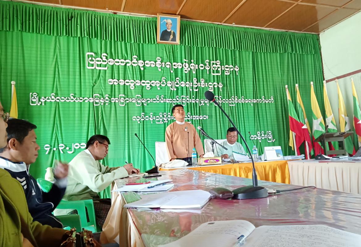 ကချင်ပြည်နယ်၊ မြစ်ကြီးနားခရိုင်၊ တနိုင်းမြို့နယ် လယ်ယာမြေနှင့် အခြားမြေများ သိမ်းဆည်းခံရမှု ပြန်လည်စိစစ်ရေးကော်မတီ လုပ်ငန်းညှိနှိုင်း အစည်းအဝေးကို ယမန်နေ့က မြို့နယ် အထွေထွေအုပ်ချုပ်ရေး ဦးစီးဌာန အစည်းအဝေးခန်းမ၌ ကျင်းပပြုလုပ်ခဲ့သည်။