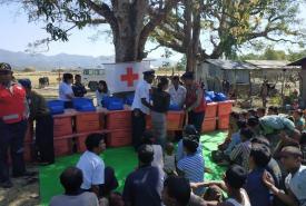 မြောက်ဦးမြို့နယ် စစ်ဘေးရှောင်စခန်းရှိ ပြည်သူများအား မြန်မာနိုင်ငံကြက်ခြေနီအသင်းမှ ထောက်ပံ့ပစ္စည်းများပေးအပ်