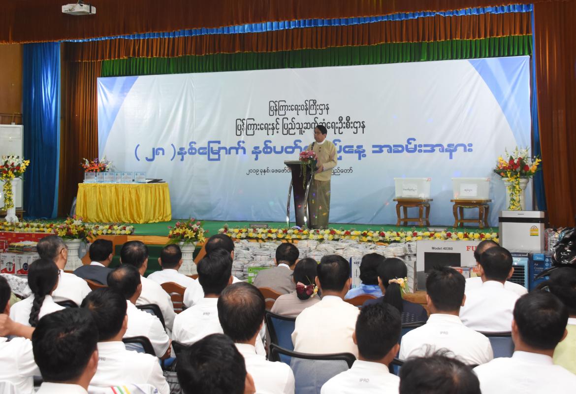 လူမှုဝန်ထမ်း၊ ကယ်ဆယ်ရေးနှင့် ပြန်လည်နေရာချထားရေးဝန်ကြီးဌာန၊ ဘေးအန္တရာယ်ဆိုင် ရာစီမံခန့်ခွဲမှုဦးစီးဌာနမှ ပြည်နယ်ဦးစီးမှူး ဦးကျော်မင်းနှင့် တာဝန်ရှိသူများသည်