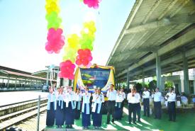 နေပြည်တော် - မန္တလေး ရထားလမ်းပိုင်းတွင် ဘက်ထရီလျှပ်စစ်စက်ခေါင်းအသုံးပြုပြီး လေအေးပေးစက်ပါ လေအိတ်ရထားတွဲဆိုင်းဖြင့် စတင်ပြေးဆွဲခြင်းအခမ်းအနားကျင်းပ