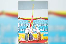 (၃၃) ကြိမ်မြောက် အရှေ့တောင်အာရှ အားကစားပြိုင်ပွဲသို့ ဝင်ရောက်ယှဉ်ပြိုင်မည့် မြန်မာအားကစား အဖွဲ့အား အောင်နိုင်ရေးအလံ အပ်နှင်းပွဲအခမ်းအနားကျင်းပ