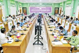ပြည်ထောင်စုသမ္မတမြန်မာနိုင်ငံတော် ယာယီသမ္မတ နိုင်ငံတော်လုံခြုံရေးနှင့် အေးချမ်းသာယာရေးကော်မရှင်ဥက္ကဋ္ဌ ဗိုလ်ချုပ်မှူးကြီးမင်းအောင်လှိုင် ဘားအံမြို့ရှိ ပြည်နယ်အဆင့်ဌာနဆိုင်ရာတာဝန်ရှိသူများ၊ မြို့မိမြို့ဖများနှင့်တွေ့ဆုံ၍ ဒေသဖွံ့ဖြိုးတိုးတက်ရေးများဆွေးနွေး