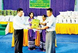 ဧရာဝတီတိုင်းဒေသကြီးဝန်ကြီးချုပ် ဆီထွက်သီးနှံ မြေပဲ၊ နေကြာ၊ ပဲပုပ် မျိုးစေ့ပေးအပ်ပွဲနှင့် မိုးစပါးစံပြကွက်ရိတ်သိမ်းပွဲသို့ တက်ရောက်
