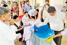 ဇီးကုန်းမြို့နယ်၌ မြန်မာအီလက်ထရောနစ်မဲပေးစက်ဖြင့် လက်တွေ့သရုပ်ပြ စမ်းသပ်မဲပေး