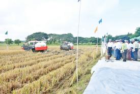 ကျောက်တန်းမြို့နယ်၌ မိုးစပါးစံကွက်ရိတ်သိမ်းပွဲနှင့် တောင်သူများသို့ မျိုးစေ့ချကိရိယာများ၊ နေကြာမျိုးစေ့များ ဖြန့်ဖြူးပေးအပ်