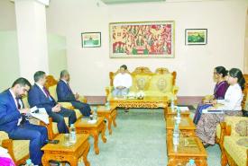 ပြည်ထောင်စုဝန်ကြီး ဦးသန်းဆွေ အိန္ဒိယသံအမတ်ကြီး H.E.Mr.Abhay Thakur အားလက်ခံတွေ့ဆုံ