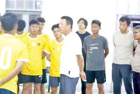 ဆီးဂိမ်းပြိုင်ပွဲအပါအဝင် နိုင်ငံတကာပြိုင်ပွဲများအတွက် လေ့ကျင့်ပြင်ဆင်နေသည့် ဘောလုံးနှင့် ဖူဆယ်အသင်းများအား မြန်မာနိုင်ငံဘောလုံးအဖွဲ့ချုပ်ဥက္ကဋ္ဌ တွေ့ဆုံအားပေး
