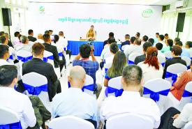 ပြည်ထောင်စုဝန်ကြီး ဒေါက်တာဝါဝါမောင် မြန်မာနိုင်ငံတွင် ဖွဲ့စည်းမှတ်ပုံတင်ထားသည့် တရုတ်စီးပွားရေးလုပ်ငန်းရှင်အသင်းများနှင့် တွေ့ဆုံပြီး အာဆီယံအသိုက်အဝန်း မျှော်မှန်းချက် ၂၀၄၅ အသိပညာမျှဝေသည့်ဆွေးနွေးပွဲသို့ တက်ရောက်