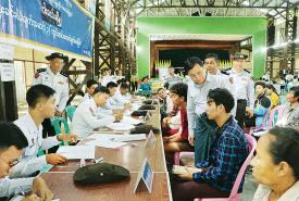 ပြည်ထောင်စုဝန်ကြီး ဦးမြင့်ကြိုင် ဝါးခယ်မမြို့နယ်၌ ပန်းခင်းစီမံချက်အဆင့်(၃)ဖြင့် နိုင်ငံသားစိစစ်ရေးကတ် ဆောင်ရွက်ပေးနေမှုကို ကြည့်ရှုအားပေး