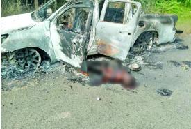 PDF အမည်ခံ အကြမ်းဖက်သမားများက သရက်မြို့ သရက်-ကံမလမ်း ပါးပွတ်ကျေးရွာအနီး၌ မော်တော်ယာဉ်တစ်စီးအား မိုင်းဆွဲတိုက်ခိုက်၊ အပြစ်မဲ့အရပ်သားပြည်သူ နှစ်ဦး မီးလောင်သေဆုံး