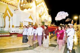 သထုံမြို့ သမိုင်းဝင်ရွှေစာရံစေတီတော်မြတ်ကြီး၌ ဘုရားဖူးပြည်သူများဖြင့် စည်ကား