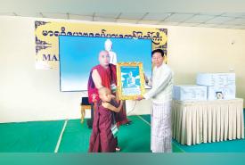 မာရဝိဇယဗုဒ္ဓရုပ်ပွားတော်မြတ်ကြီးသို့ အနယ်နယ်အရပ်ရပ်မှ လာရောက်ဖူးမြော်ကြည်ညိုကြသည့် ရဟန်း၊ ရှင်လူဘုရားဖူးပြည်သူများအနက် ဦးရေ သုံးသန်းပြည့်မြောက်သည့် ဘုရားဖူးလာ ဆရာတော်အား ဓမ္မလက်ဆောင်ပစ္စည်းများ ဂုဏ်ပြုဆက်ကပ်လှူဒါန်း