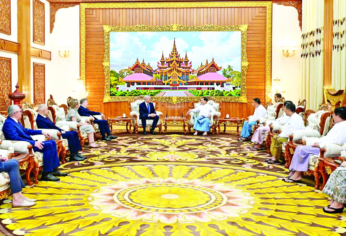 ပြည်ထောင်စုသမ္မတ မြန်မာနိုင်ငံတော် ယာယီသမ္မတ နိုင်ငံတော်လုံခြုံရေးနှင့် အေးချမ်းသာယာရေး ကော်မရှင်ဥက္ကဋ္ဌ ဗိုလ်ချုပ်မှူးကြီးမင်းအောင်လှိုင်ထံ ရုရှားဖက်ဒရေးရှင်းနိုင်ငံ ဒူးမားလွှတ်တော် ဒုတိယဥက္ကဋ္ဌ ဦးဆောင်သည့် ကိုယ်စားလှယ်အဖွဲ့က လာရောက်ဂါရဝပြုတွေ့ဆုံ