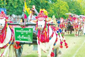(၅၅)ကြိမ်မြောက် တပ်ကုန်းမြို့လုံးဆိုင်ရာ မဟာဘုံကထိန်ပွဲတော်ကို ဂုဏ်ပြုသောအားဖြင့် ကျင်းပသည့် မြန်မာ့ရိုးရာလှည်းယဉ်ကြော့ပြိုင်ပွဲနှင့် နွားအလှပြိုင်ပွဲ ဆုများချီးမြှင့်
