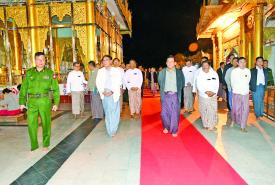 ပြည်ထောင်စုသမ္မတမြန်မာနိုင်ငံတော် ယာယီသမ္မတ နိုင်ငံတော်လုံခြုံရေးနှင့် အေးချမ်းသာယာရေး ကော်မရှင်ဥက္ကဋ္ဌ ဗိုလ်ချုပ်မှူးကြီးမင်းအောင်လှိုင် ပဲခူးတိုင်းဒေသကြီး ပြည်မြို့ကျက်သရေဆောင် လေးဆူဓာတ်ပျော် ရွှေဆံတော်စေတီတော်မြတ်ကြီးအား ဖူးမြော်ကြည်ညို