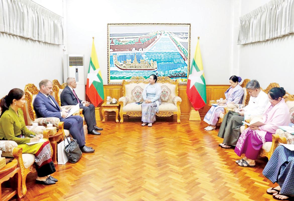 ပြည်ထောင်စုဝန်ကြီး ဒေါက်တာဝါဝါမောင် ဟနွိုင်းမြို့အခြေစိုက် ဘယ်လာရုစ်သံရုံးမှ သံအမတ်ကြီး H.E. Mr. Uladzimir Baravikou အား လက်ခံတွေ့ဆုံ
