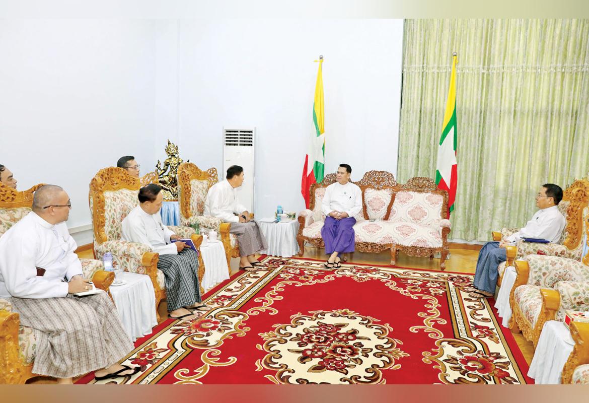 ပြည်ထောင်စုသမ္မတမြန်မာနိုင်ငံတော်ယာယီသမ္မတနိုင်ငံတော်လုံခြုံရေးနှင့်အေးချမ်းသာယာရေးကော်မရှင်ဥက္ကဋ္ဌ ဗိုလ်ချုပ်မှူးကြီးမင်းအောင်လှိုင်နှင့် ပြည်ထောင်စုဝန်ကြီးများ၊ နေပြည်တော်ကောင်စီဥက္ကဋ္ဌ၊ တိုင်းဒေသကြီး/ ပြည်နယ်ဝန်ကြီးချုပ်များ လုပ်ငန်းညှိနှိုင်းအစည်းအဝေး