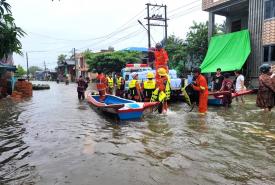 အမ်းမြို့နယ်၌ မိုးသည်းထန်စွာ ရွာသွန်းမှုကြောင့် မြေနိမ့်ပိုင်းရပ်ကွက်ရှိ အိမ်ထောင်စုများအား ကူညီကယ်ဆယ်ရေး ဆောင်ရွက်