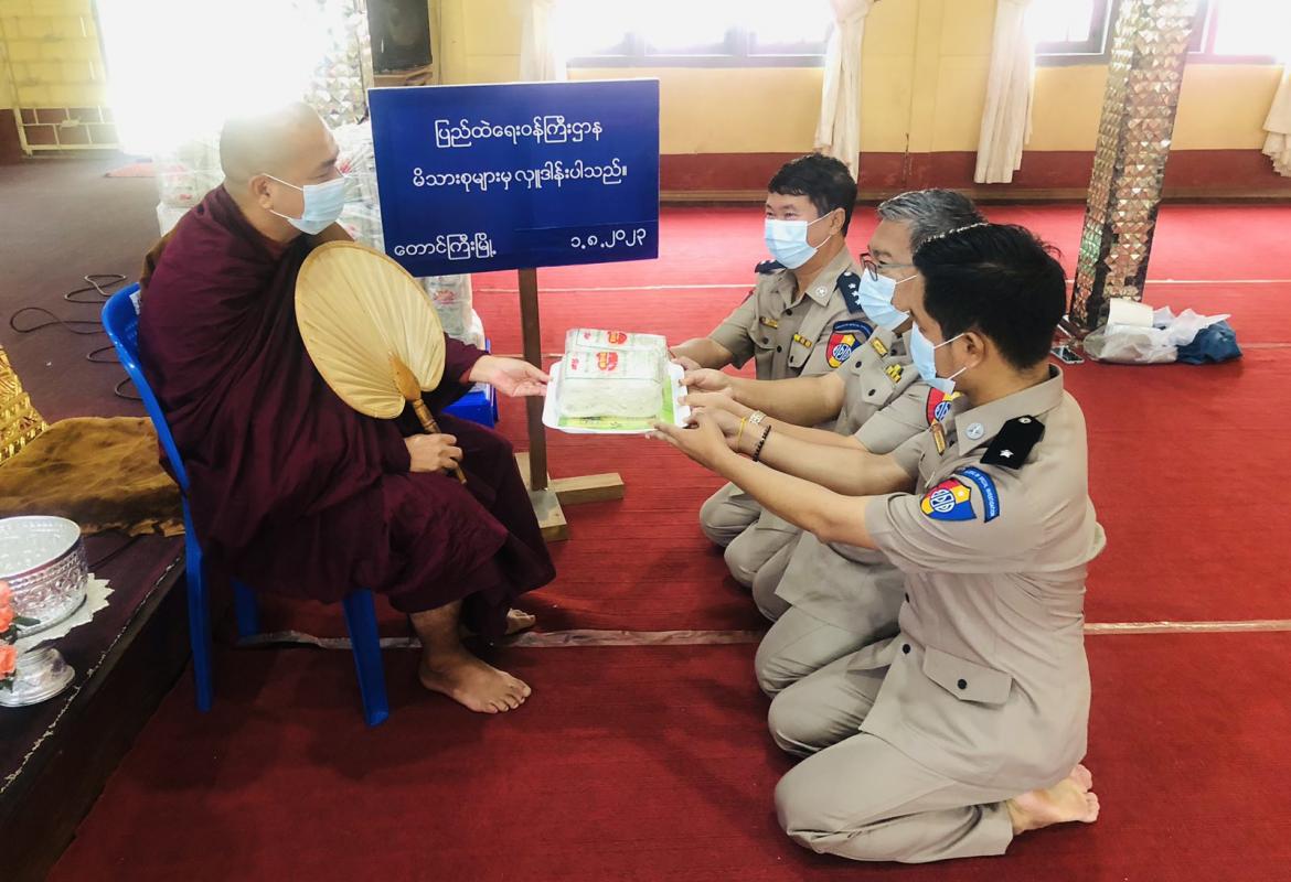 ပြည်ထဲရေးဝန်ကြီးဌာန မိသားစုများ ဆွမ်းဆန်တော်နှင့် ဆန်ကြာဆံများ ဆက်ကပ်လှူဒါန်း
