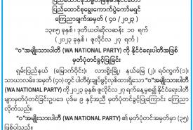 "ဝ" အမျိုးသားပါတီ (WA NATIONAL PARTY) ကို နိုင်ငံရေးပါတီအဖြစ် မှတ်ပုံတင်ခွင့်ပြု